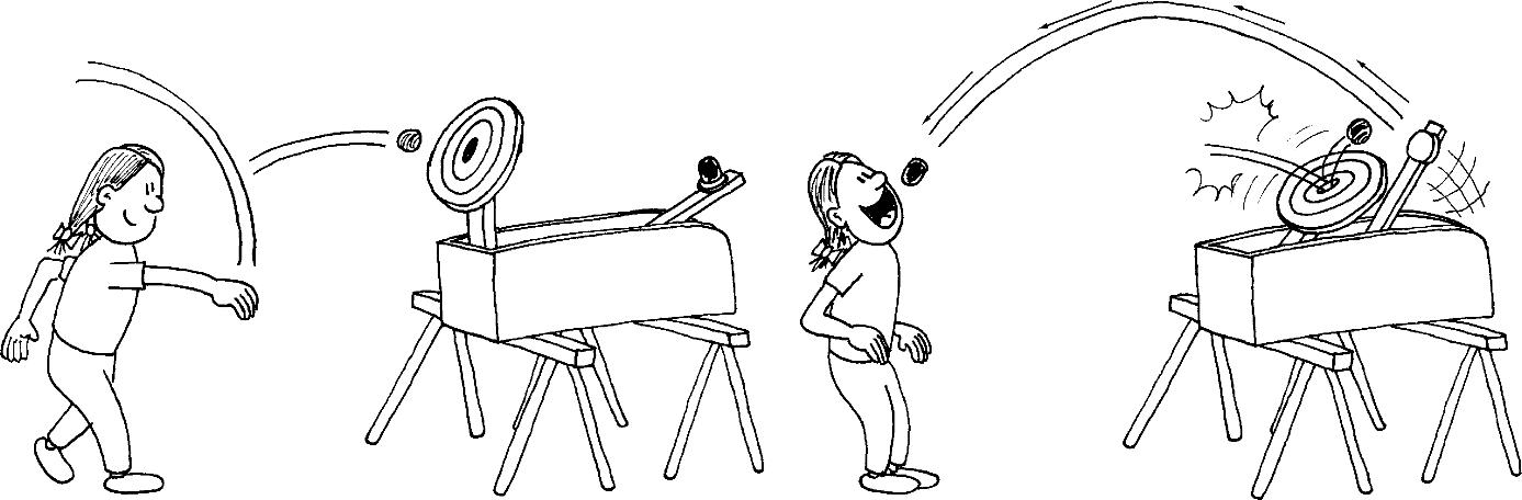 Auf die Zielscheibe wird mit Sandsäckchen geworfen